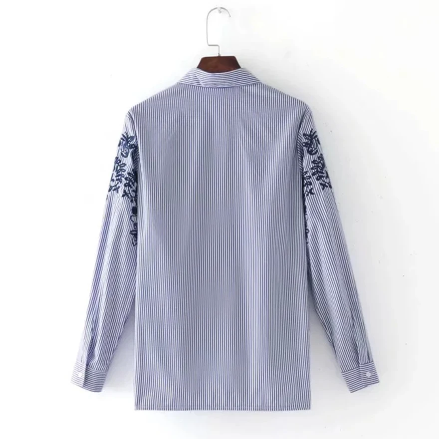 2017 новая мода полосатая рубашка с вышивкой, доставляющее чувство винтажа и благородства,