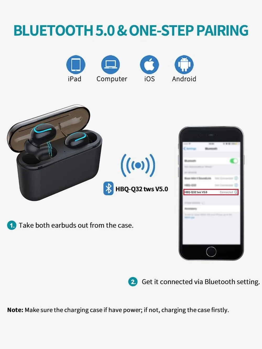 Наушники * 2, зарядный отсек * 1, зарядный кабель * 1, Ушная крышка * 4, руководство * 1