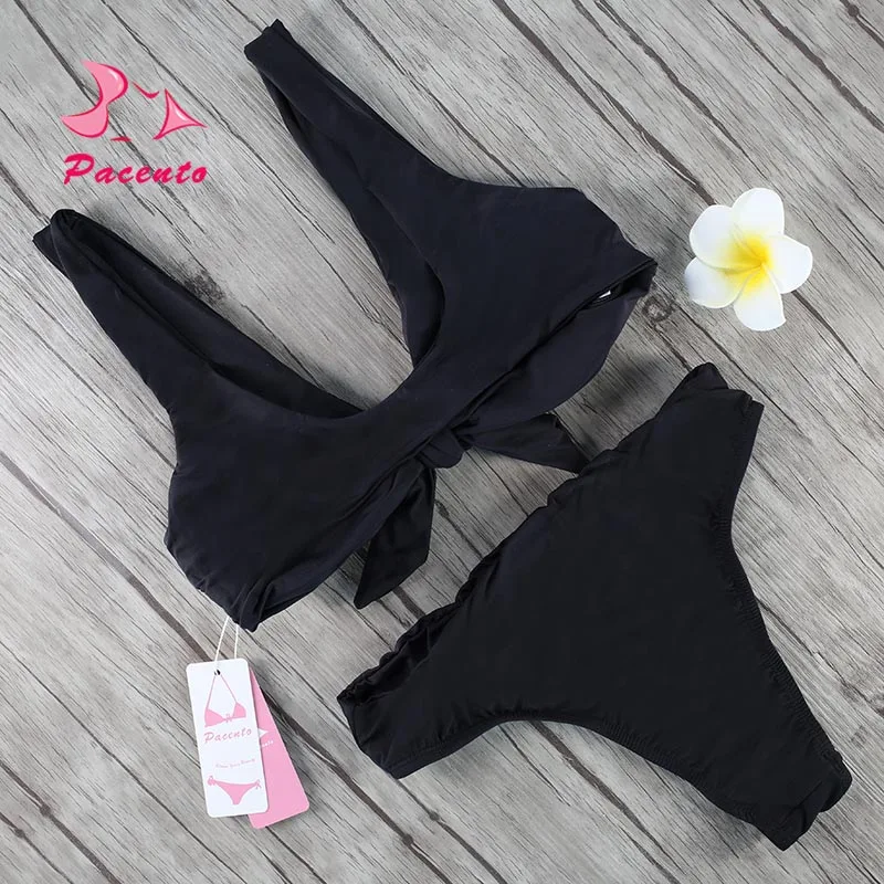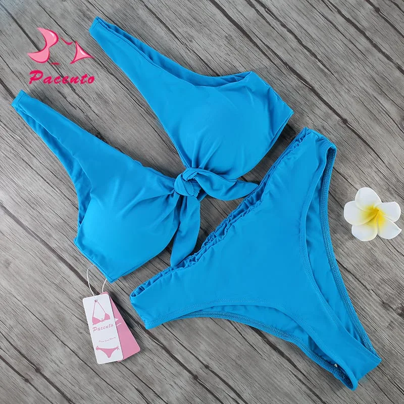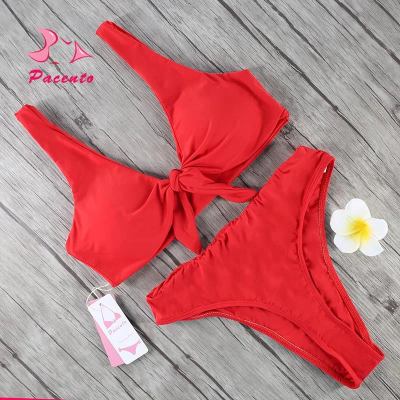 Pacento 2017, однотонные бикини, сексуальные купальные костюмы, купальник с бантом, женский купальник с высокой талией, 3 цвета, пляжная одежда, Bademode XL Plavky