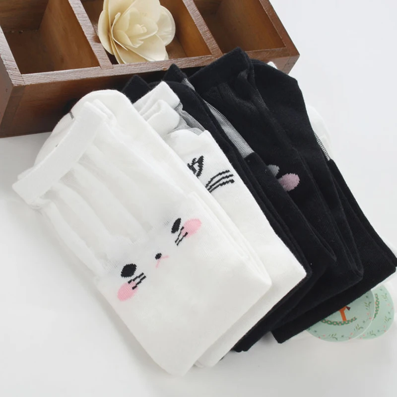 Черно-белые кружевные гольфы для девочек с рисунком кота, новинка 2017 года, детские носки милые длинные хлопковые детские носки, Лидер продаж