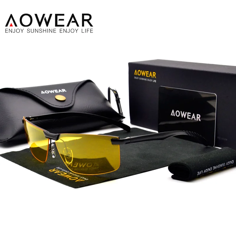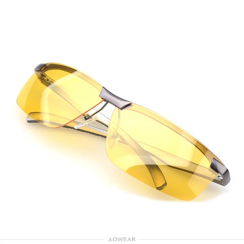 AOWEAR HD очки ночного видения для вождения безопасные мужские очки поляризованные солнцезащитные очки мужские очки из алюминиевого сплава антибликовые очки водителя