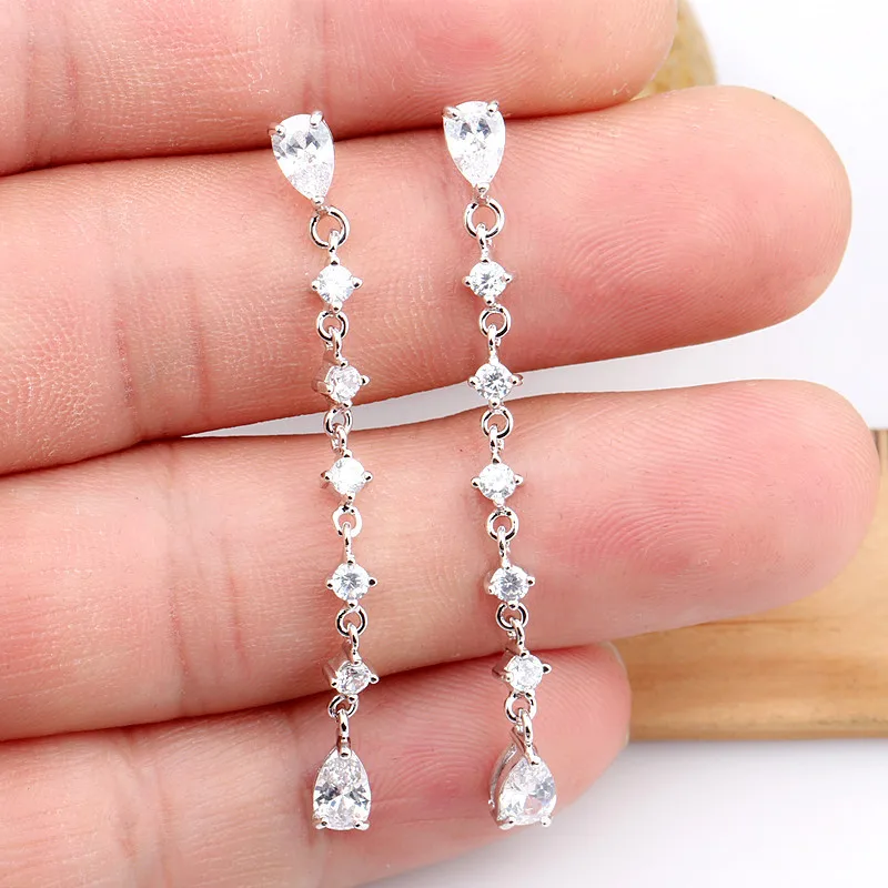 925 пробы серебряные серьги длинные серьги с кисточками Капля воды AAA циркон