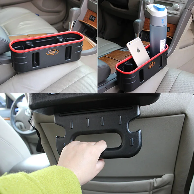 Описание товара: -Уникальная форма, простой стиль, простота установки. -Вы можете разместить свой телефон, бутылку в нем, сделать ваш автомобиль более чистым. -Красивый внешний вид, прочный и долговечный. -Есть крючок, вы можете повесить сумку или другое. Вес Подвеса 3-5 кг. -Есть поручень, задние пассажиры могут держать, когда автомобиль трясется. Характеристики: Материал: PP, PE пластик Цвет: черный Вес: 0,2 кг Размер: 26X19.5X7.5cm Фотографии товара: