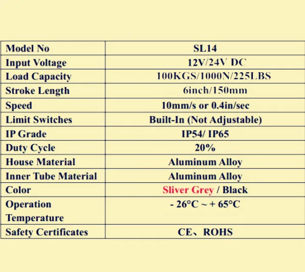 -- Длина хода: 6 дюймов/150 мм (длина выдвижения).