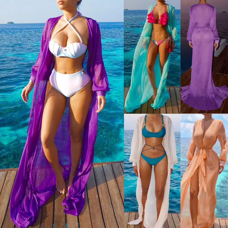 2017 женское пляжное платье, накидка, кафтан, шифон, саронг, летнее женское платье