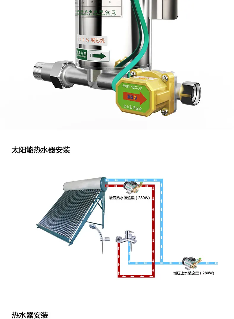 280 Вт нержавеющая сталь головка насоса автоматический душ бустер насос 18л/м