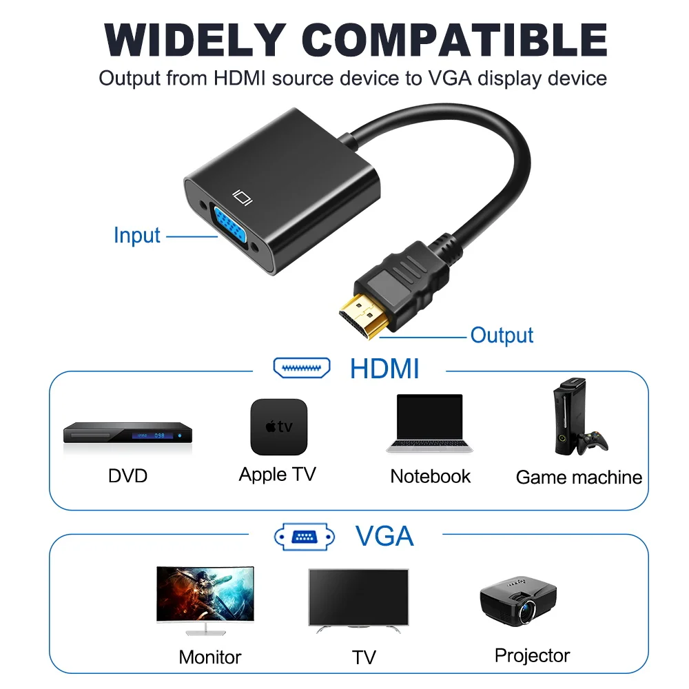 Особенности Поддержка разрешения до 1080p (1080p Full HD) для hd-дисплеев или проекторов Подходит для всех устройств входного интерфейса HDMI и выхода VGA Внутренний чип преобразования улучшает Совместимость Конструкция Plug and play, специальная конфигурация не требуется