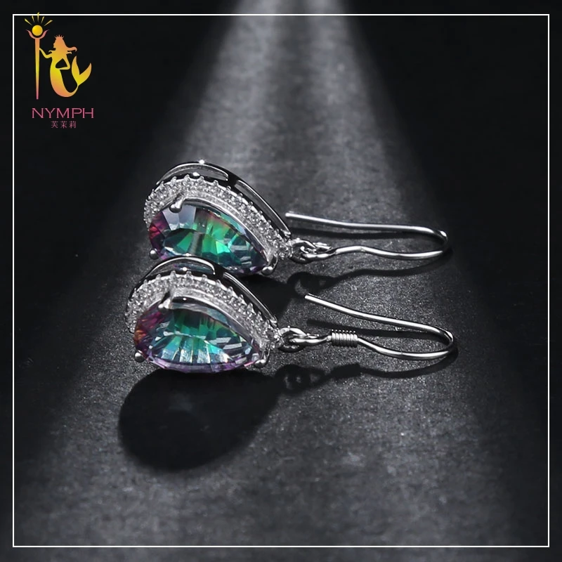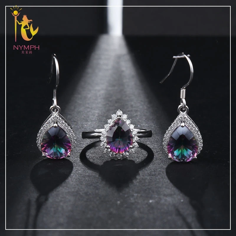 NYMPH Модный комплект ювелирных изделий с кристаллами, 925 пробы, серебряные серьги-капли, регулируемое кольцо Bijoux, женские вечерние серьги, подарок