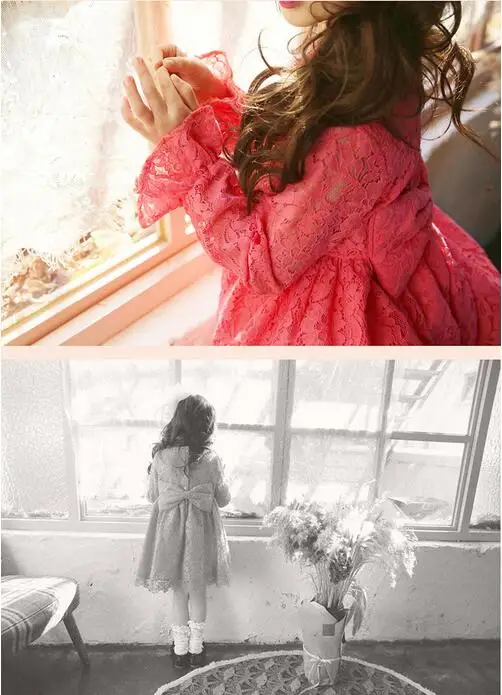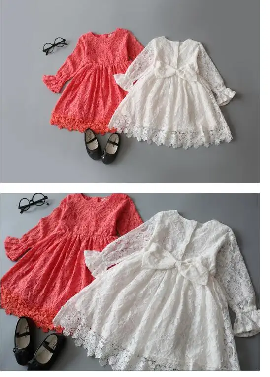 Girl's Fashion Princess dresses 2017 Autumn Cute Long Sleeve Lace Kids Tutu Dresses Preppy Style Children's Dresses