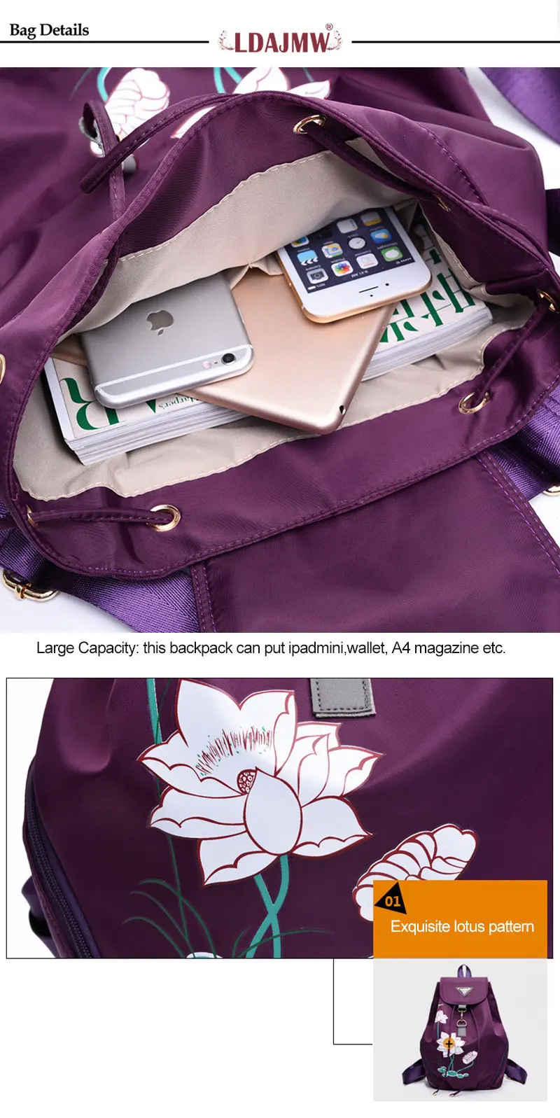 Емкость: ipadmini, кошелек,Журнал А4И т. Д.