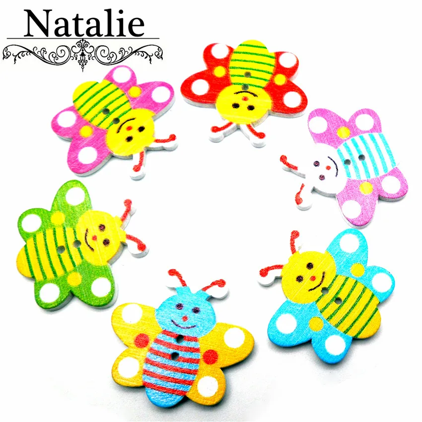 50 шт.. натуральные деревянные пуговицы красочные пчелы волны края Кнопки 2 отверстия для поделок DIY Одежда Скрап Швейные аксессуары