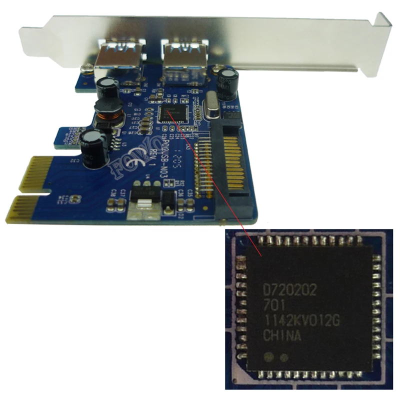 Чипсет: Renesas uPD720202 Совместим с универсальной серийной шиной 3,0 Спецификация версии 1,0 Совместимость с расширенным интерфейсом хост-контроллера Intel (x HCI) Спецификация 0,96 Четыре нисходящих порта поддерживают супер скорость, высокую скорость, полную скорость и низкую скорость. Совместим с PCI Express Specification 2,0 Поддержка начального драйвера для Windows 7, Vista и XP