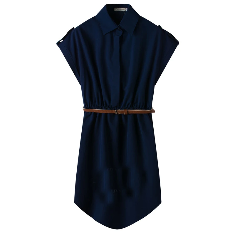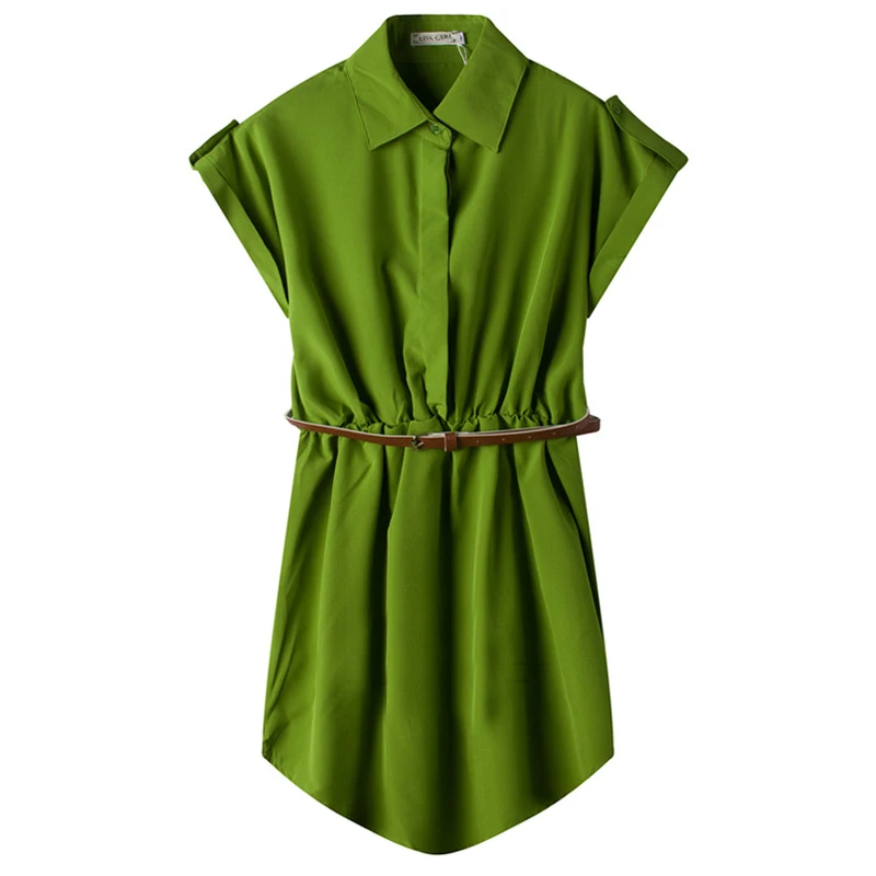 Женские Элегантные Повседневная рубашка платье короткий рукав Высокая Талия линия Стиль плюс Размеры свободные платья с Пояса летние однотонные Цвет
