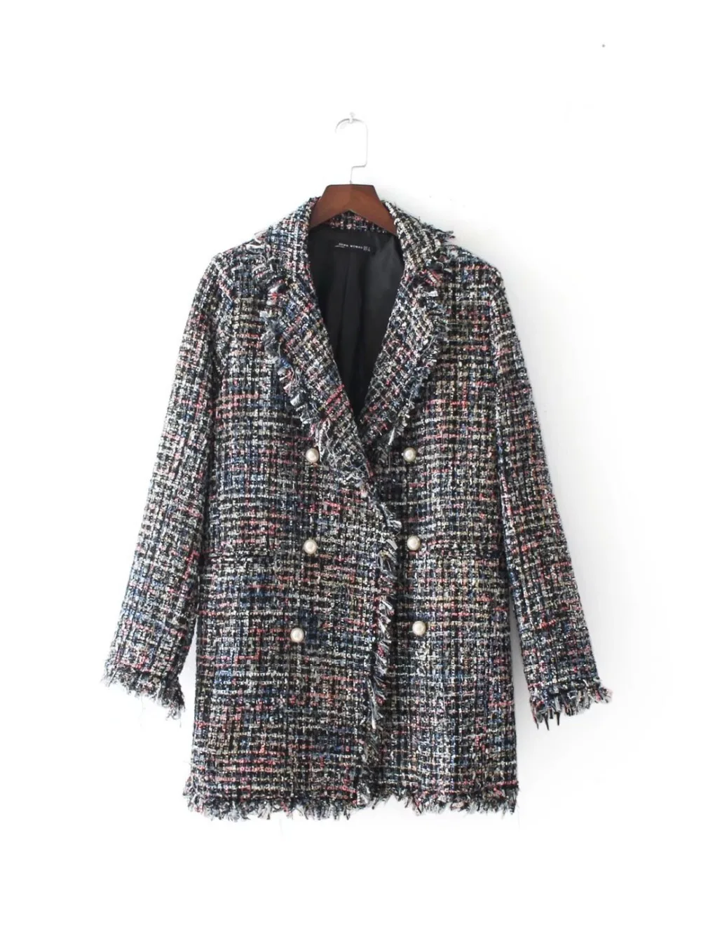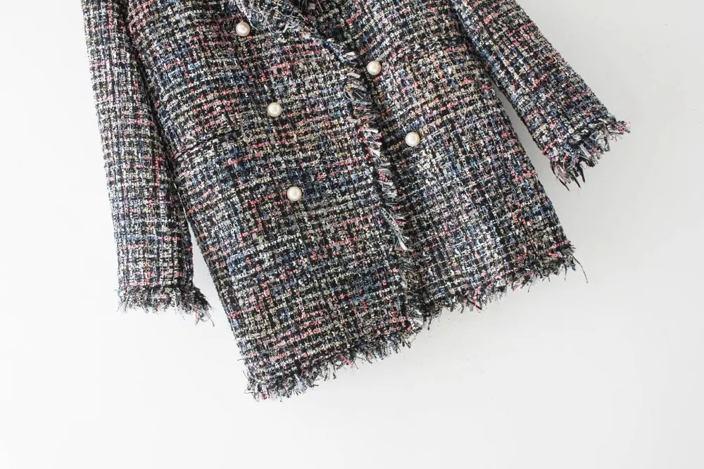 2017 Women Double Breasted Pearl Buttons Blazer Long-sleeve Wool Blazer Tops Women Blazers and Notched Jackets