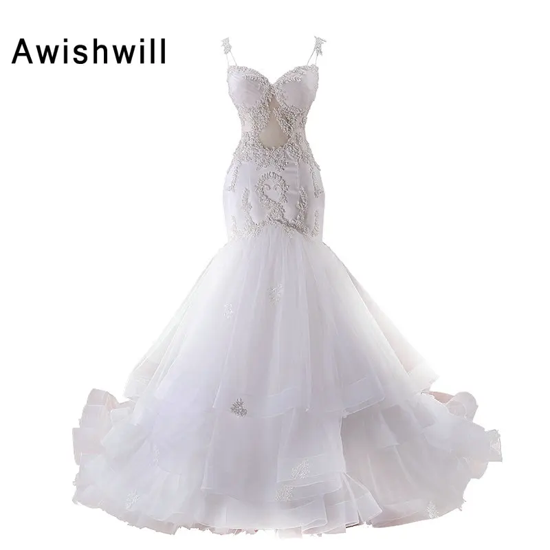 Vestidos de Novia Sirena сексуальное свадебное платье на бретельках со шнуровкой и аппликацией сзади Русалка 2020 свадебные платья