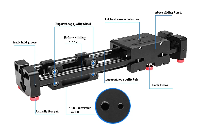 Масштабируемая Двойная камера с умным дизайном, может быть основана на оригинальной длине в 2 раза от фактического расстояния такси, отлично подходит для съемки в помещении или на открытом воздухе. Кроме того, слайд с точностью 8 подшипников плюс гладкая конструкция пояса, с превосходной гладкостью. И с размером винта для плавной регулировки демпфирования, гибкой и стабильной.