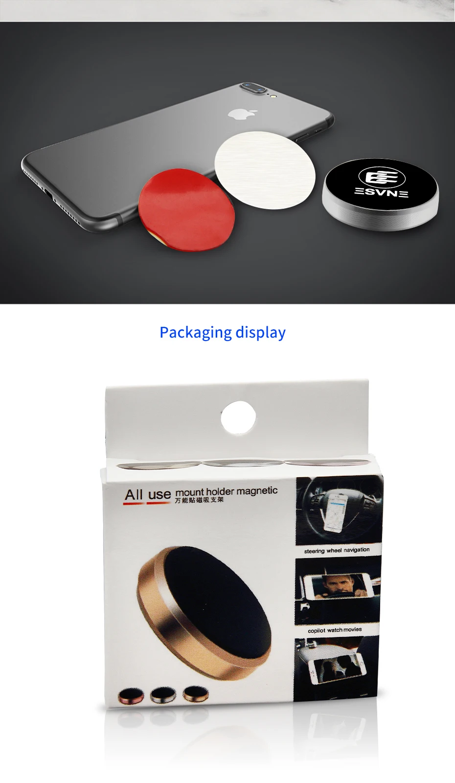 1) Это автомобильный держатель магнитный для сотовых телефонов не громоздкие или много места вообще. Вам больше не придется достаточно для поддержания вашего телефона в подстаканник или Dashboard, Потому что обычный автомобильный держатель попадает в пути. Этот автомобильный держатель Магнитный наклеить на приборной панели, тем самым не блокирует лобовое стекло или вентиляционное отверстие. 2) навигация чрезвычайно легко с этим магнитное крепление автомобиля. он может легко повернуть, исправить, или наклона на любой угол, что лучшие помогает просмотра телефона. 3) магнитная технология безопасна в использовании, и не повредит Любой смартфон. из углеродистой стали пластин внутри автомобильный держатель Магнитный ультра тонкие и разработан таким образом, что она обеспечивает мощный Холдинг власти, а также воздействия Магнитная нестабильности. Наряду с быть безопасным, это также мощный, Он привлекает любой телефон, чтобы она быстро-это Swift кнопки функцию. Пользователь может просто поднести телефон вблизи горы и он будет взять его легко, Таким образом, пользователь больше не имеет возиться о с хранением свой телефон инструкции, как установить крепление: 1) сначала очистить поверхность на монтажной место. 2) пил наклейки с горы и придерживаться его. 3) Место магнит металлическую пластину в вашем случае между крышкой и телефон, или наклеить на круглый магнит из металла на ваш телефон или GPS 3) и ваш телефон хорошо идти!dianxiaobao_3