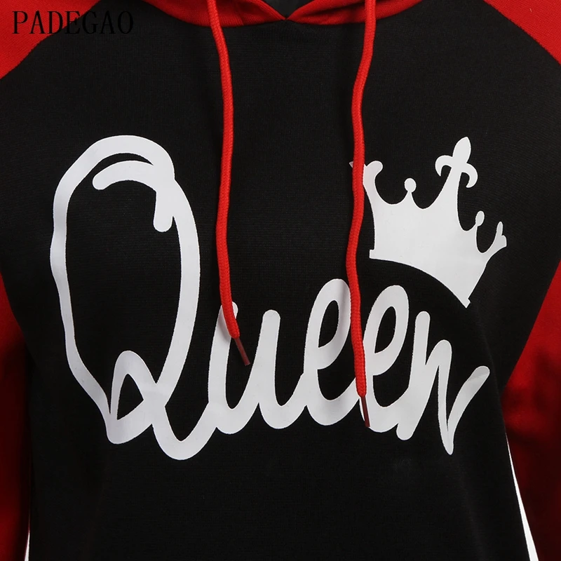 Padegao красный и черный толстовки королева Печать с капюшоном Длинные рукава Осень Зима толстовка
