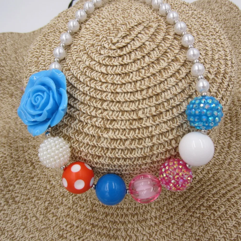 Очаровательное ожерелье с голубым цветком 43 мм, ожерелье с массивными бусинами для малышей, красивый подарок для маленьких девочек, ожерелье с пузырьковой резинкой, детское ювелирное изделие для фотосессии