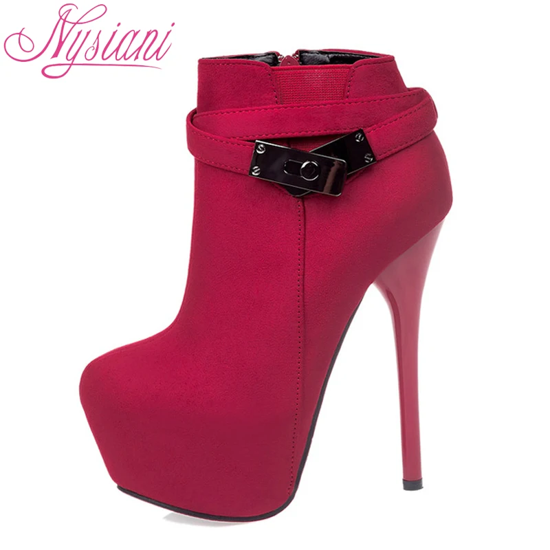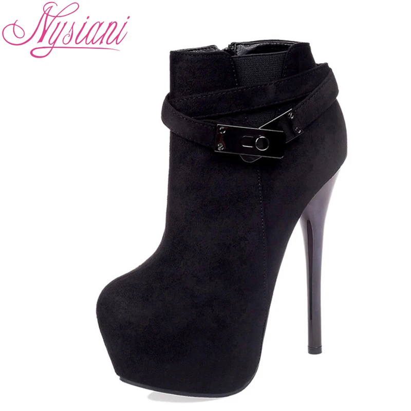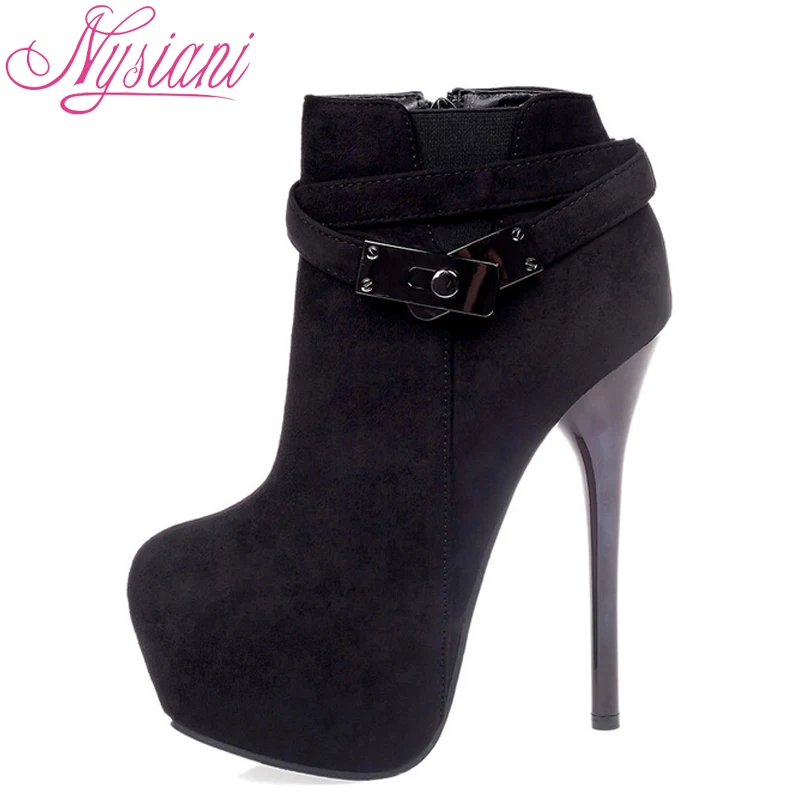 2018 сексуальные высокие каблуки Ботильоны Туфли на платформе осень зима металлический пояс с пряжкой ночной клуб остроносый носок тонкие каблуки сапоги Nysiani