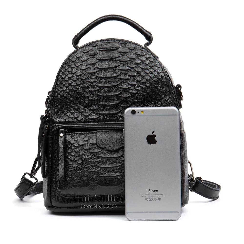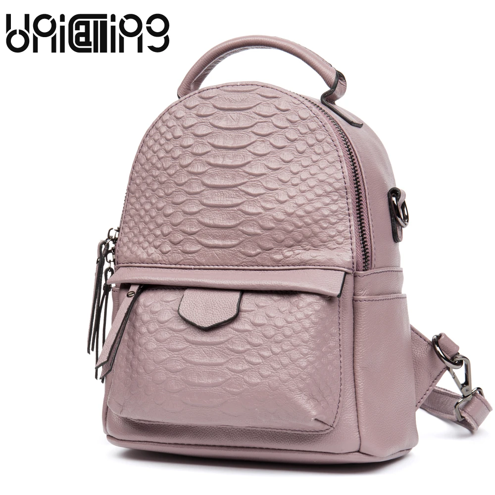 Женский рюкзак из коровьей кожи, Одноцветный мини-рюкзак из натуральной кожи крокодила на молнии