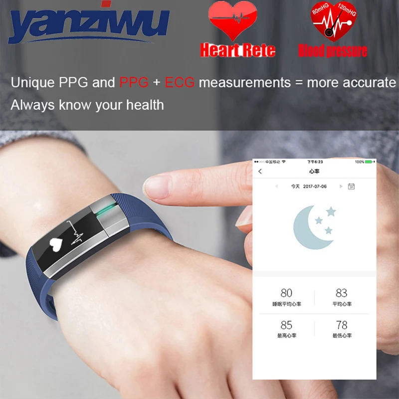 | Код Особенности | Мобильный телефон, найти браслет, пульт дистанционного управления, сидяющее напоминание, вся точка измерения, события напоминания, сообщество для обмена QQ, WeChat, телефон, Facebook, Twitter, Skype, whatsApp Health: кровяное давление, кровяный кислород, частота сердечных сокращений,ЭКГ, вариативность сердечного ритма (HRV) |