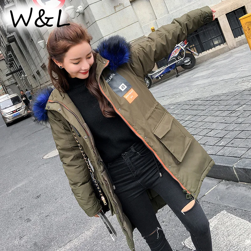 2017 Women Parkas long Coats Warm Winter Down Jackets thick Female Overcoat oversized fur collar casual outerwear slim clothing