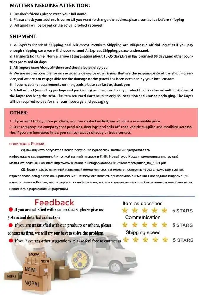 Стаж работы магазина Mopai Car Accessories Store можно посмотреть на странице заказа товара.