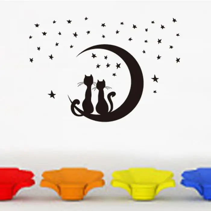 Новые креативные кошки выглядят на звездах в ночном небе черная луна звезды настенные наклейки домашний декор TB распродажа