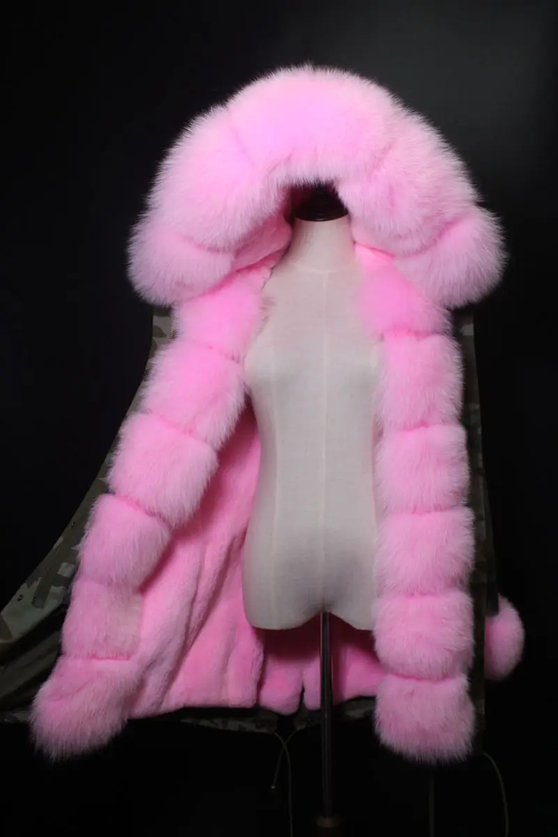 Материал: воротник из натурального меха лисы(Только для меха капюшона, рукава из искусственного меха, передняя застежка из меха)+ Высококачественная подкладка из кроличьего меха + хлопок