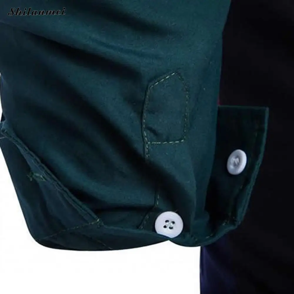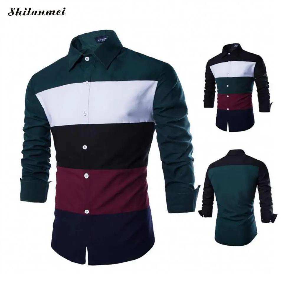 Весна Мужская рубашка черный зеленый в полоску с длинным рукавом узкие мужские рубашки пэчворк мужские брендовые рубашки Осень повседневные Мужчины s одежда