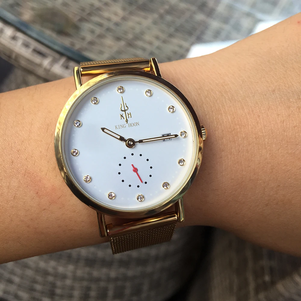 Бренд: KING HOON Стиль: Повседневный, деловой Дисплей: аналоговый Механизм: оригинальный кварцевый механизм Трехмерный циферблат Основные Особенности: -100% новый с биркой и высоким качеством; -0,75 см ультра тонкий чехол дизайн; -Функция автоматического отображения даты; -Водонепроницаемость (поддержка холодного душа и плавания, не используйте часы под водой); -Качественный чехол из цинкового сплава; -Качественная сетка из нержавеющей стали; Спецификация (приблизительная): -Чехол Диаметр: 3,8 см -Чехол Толщина: 0,75 см -Диапазон Ширина: 1,8 см -Общая длина: 22,0 см -Вес изделия: 72 г
