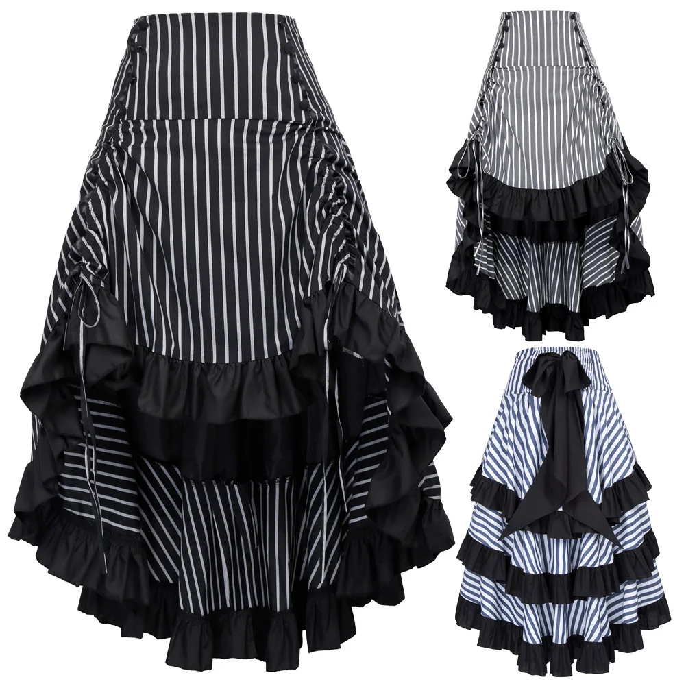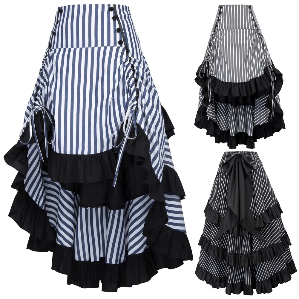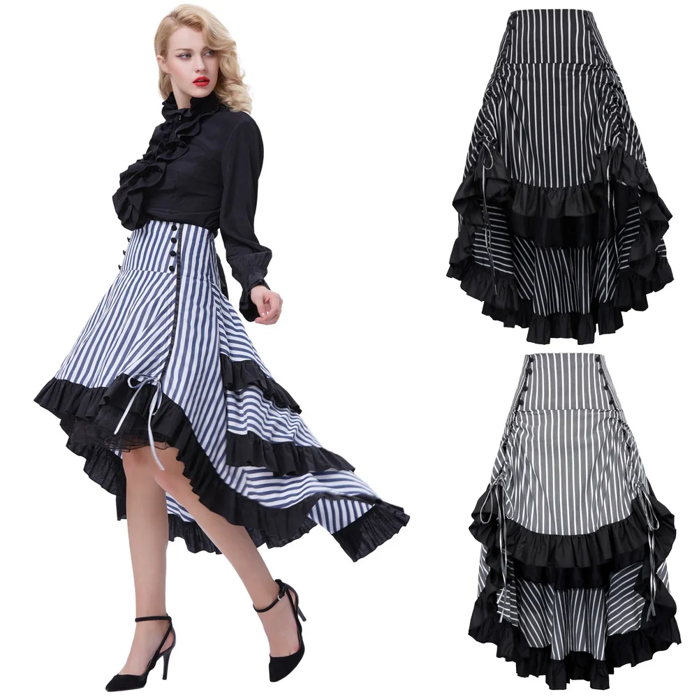 Юбка: | 1) талия эластичная 2) восемь декоративных пуговиц спереди 3) завязки спереди для регулировки длины юбки 4) скрытая молния с левой стороны 5) большой фиксированный бант украшает заднюю часть 6) черные оборки украшают заднюю часть 7) без подкладки |