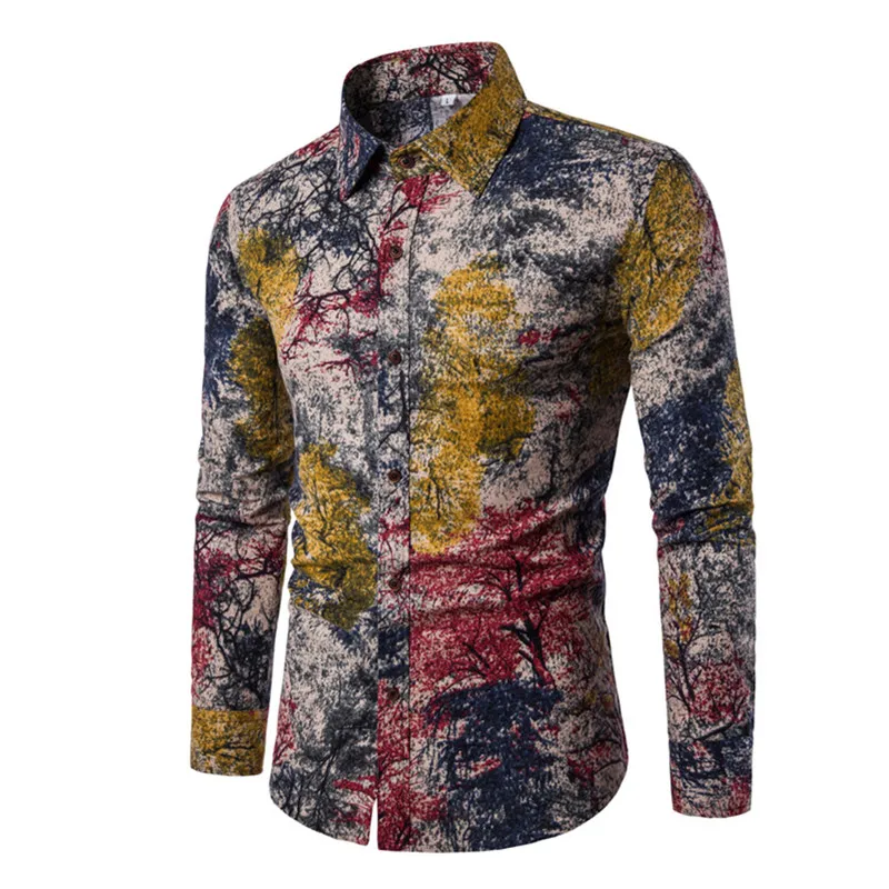 Мужские льняные рубашки с цветочным принтом, модные мужские кардиганы с длинными рукавами, большие размеры, 2017