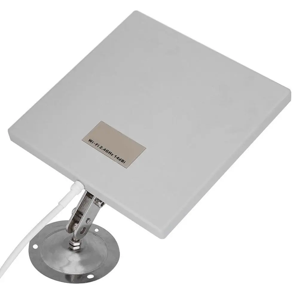Это высокоэффективная направленная антенна WIFI с плоской панелью, подходящая для использования в помещении и на открытом воздухе. Расширьте свой доступ к Wi-Fi с помощью нашей 14dBi WIFI панельной антенны. Работая на частоте 2,4 ГГц, эта наружная антенна будет получать или передавать сигналы на расстоянии 4 миль при идеальных обстоятельствах. Нормальные условия позволяют ему работать от 1 до 3 миль. Эта антенна является наружной номинальной, водонепроницаемой, жесткой и не уменьшает производительность через ураган.
