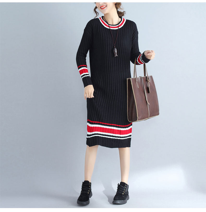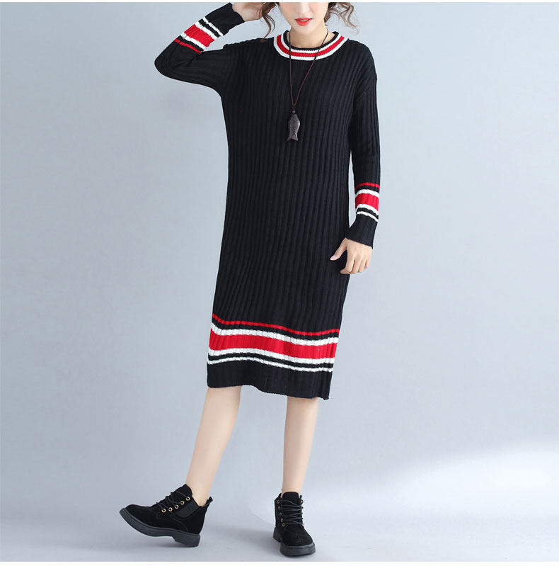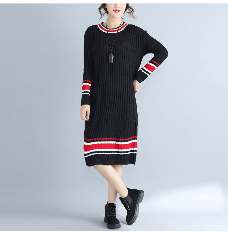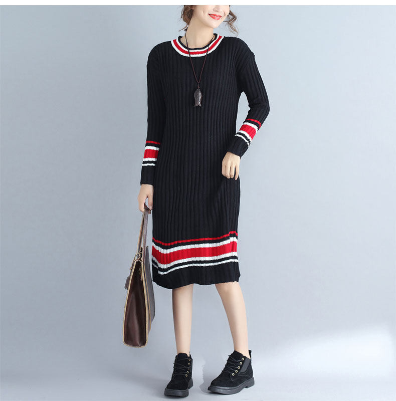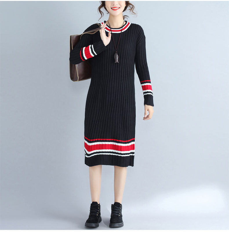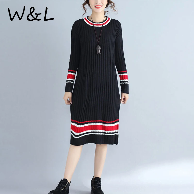 2017 плюс Размеры Для женщин Платья-свитеры Зимний вязаный пуловер в полоску Сгущает с длинными рукавами и круглым вырезом Модные женские Костюмы негабаритных