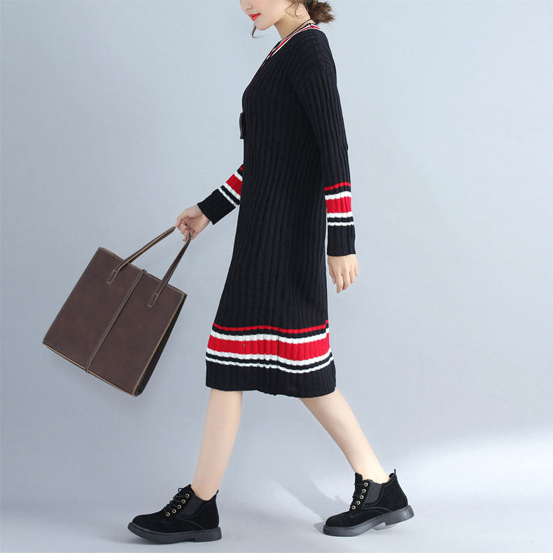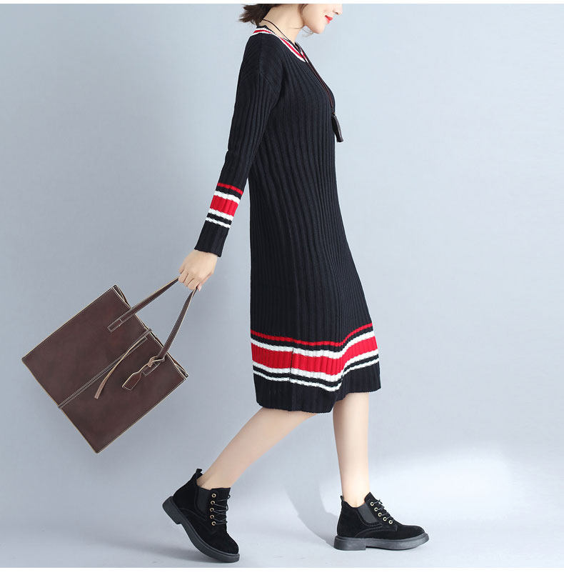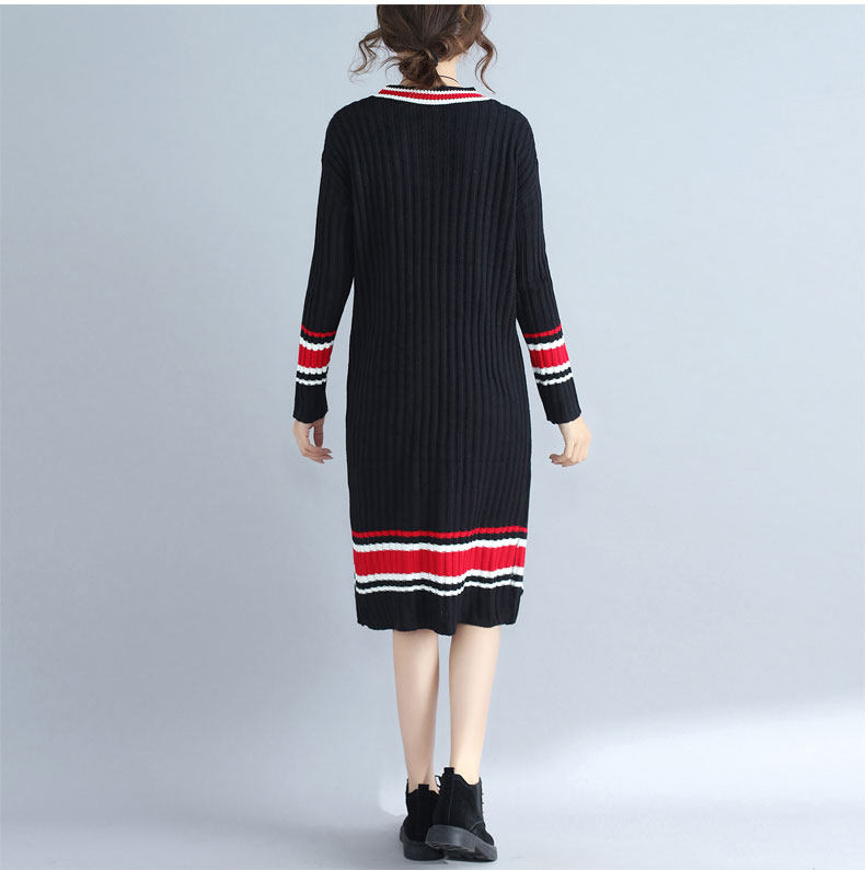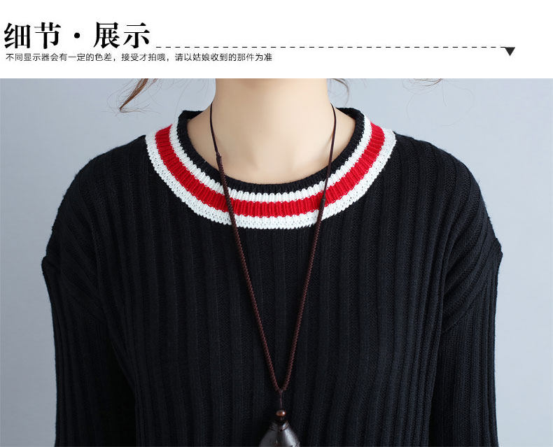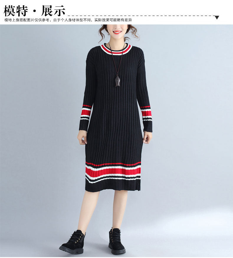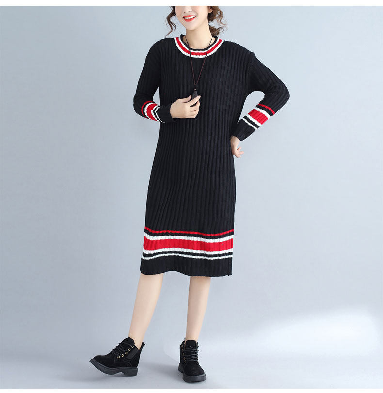 2017 плюс Размеры Для женщин Платья-свитеры Зимний вязаный пуловер в полоску Сгущает с длинными рукавами и круглым вырезом Модные женские Костюмы негабаритных
