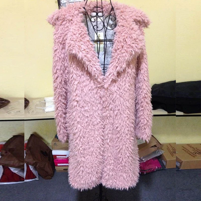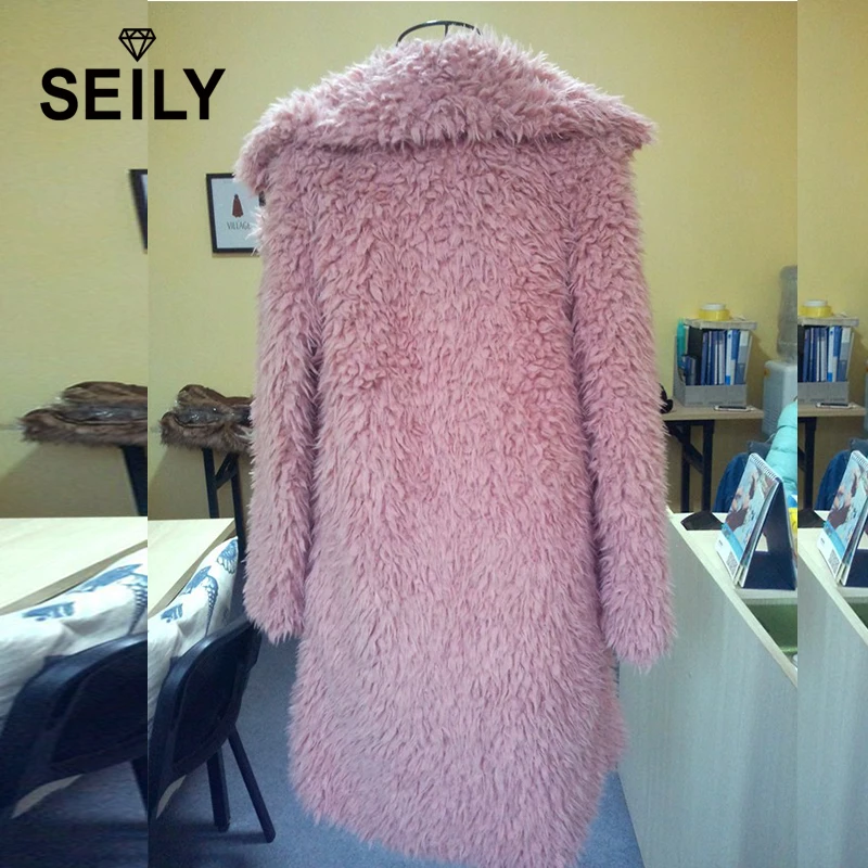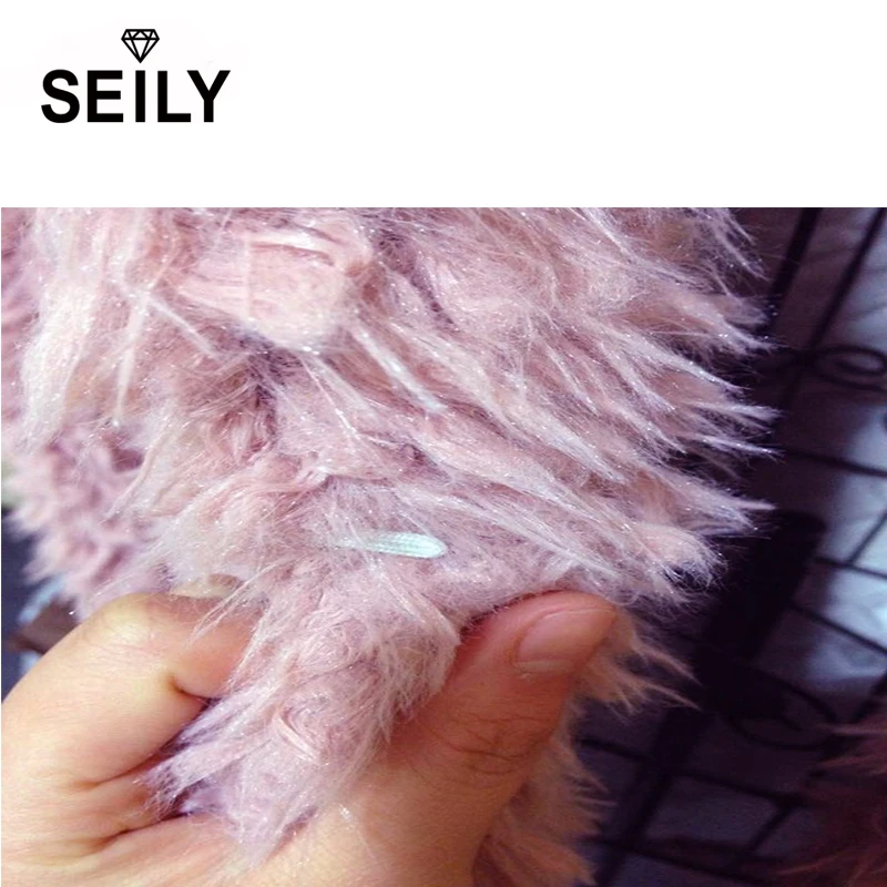 Seily зимняя Роскошная розовая пушистая куртка из искусственного меха с длинными рукавами