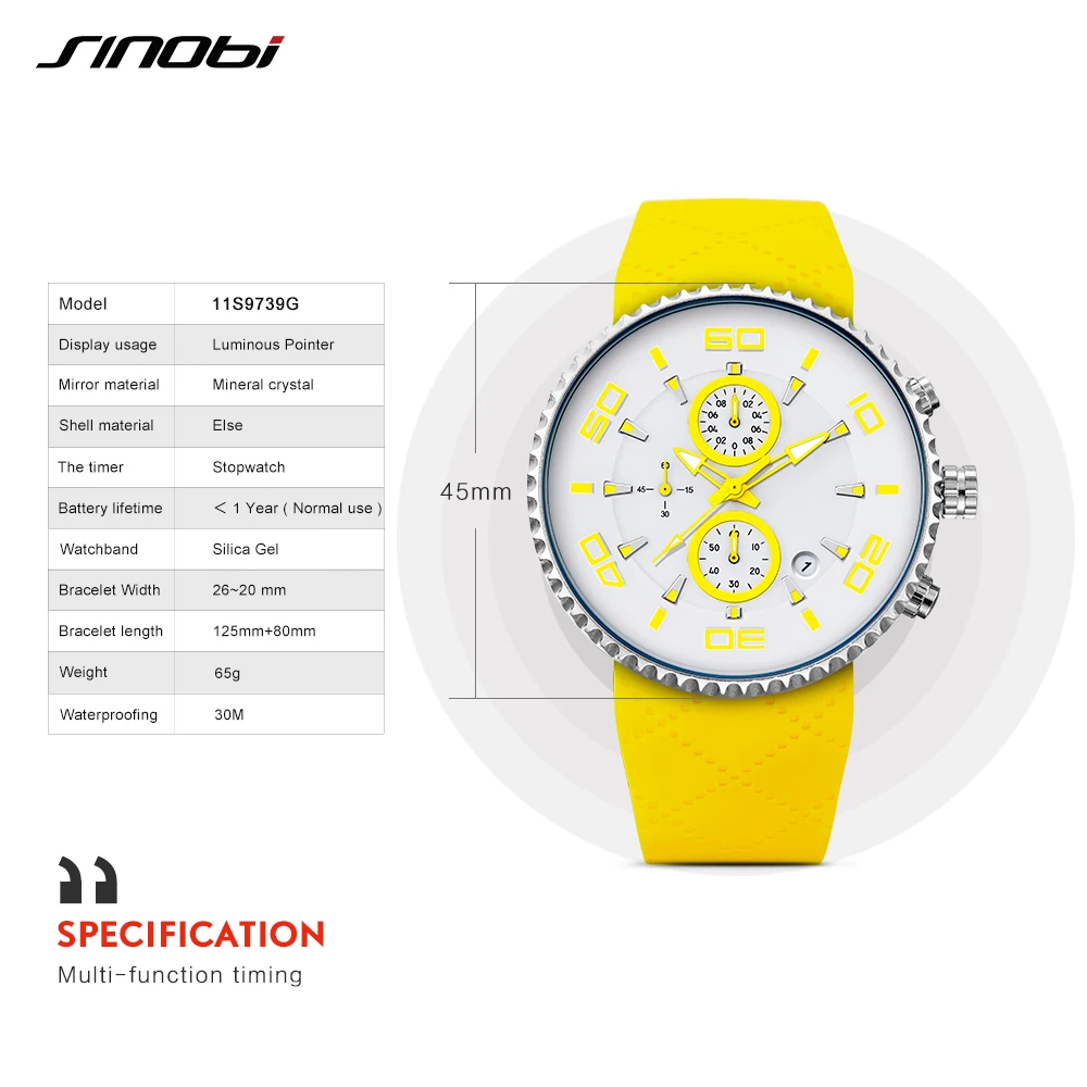 Спортивные часы релаксации мужские секундомер 30 м Водонепроницаемый часы Reloj Hombre SINOBI спортивные часы-хронограф бесплатная доставка