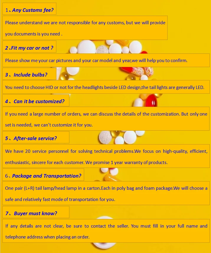 1. Простая установка: подключи и работай, так же, как и оригинал в instal. Однако, некоторые автомобили чувствительны, мы рекомендуем покупателю установить их профессиональным установщиком. 2. Посылка включает в себя: 1 комплект для одного автомобиля (1 левая + 1 правая) 3. Описание заднего фонаря:
