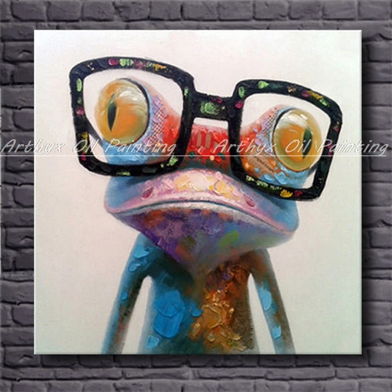 Описание товара:Arthyx ручная роспись акриловый холст Масляные картины красочная лягушка с большими очками Смешные современные абстрактные животные настенные художественные украшения детской комнаты.