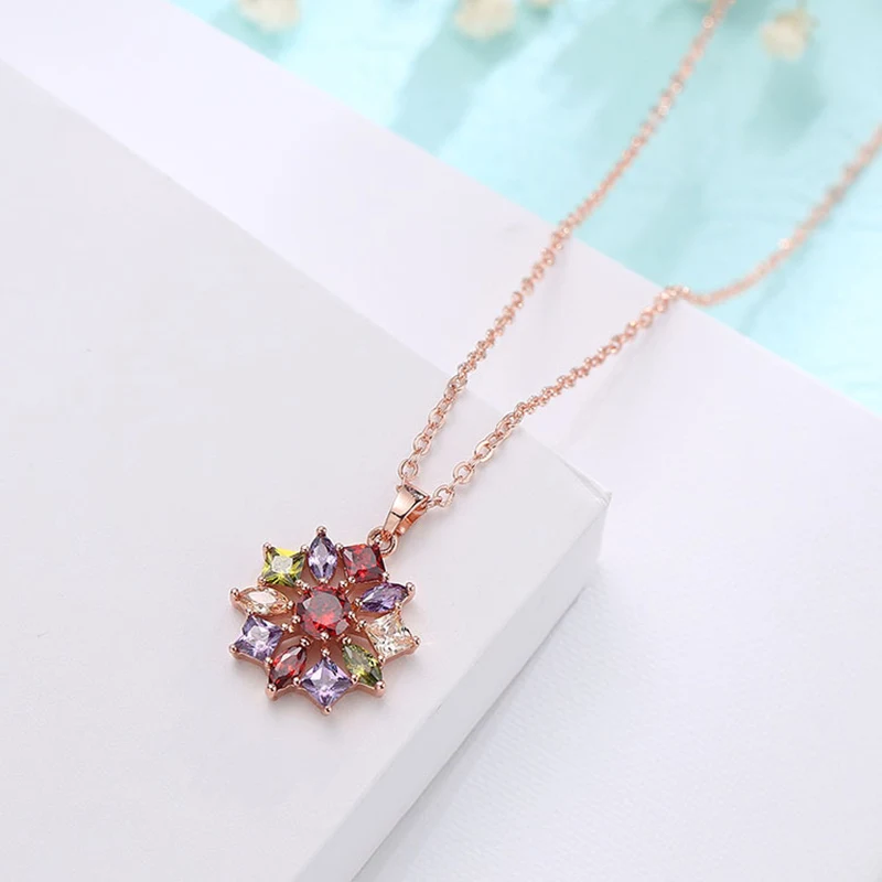 Разноцветное круглое ожерелье с подвеской в виде цветка, модное ожерелье с разноцветным фианитом и кристаллом Mona Lisa, красивые женские Подарочные ювелирные изделия