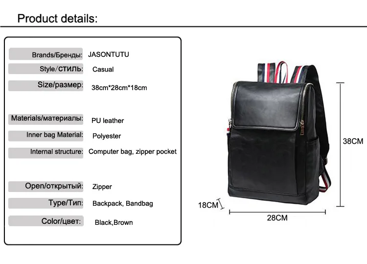 JASON TUTU мужской рюкзак в английском стиле фирменный дизайн школьный рюкзак Рюкзак высокого качества для ноутбука из искусственной кожи черный коричневый Mochilas B584