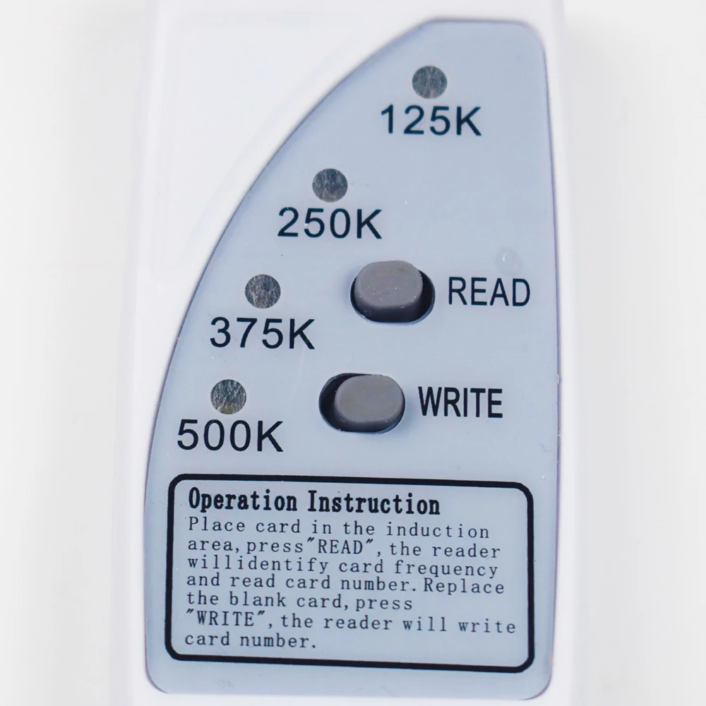Как использовать: Шаги по эксплуатации, как показано ниже: Шаг 1 включится, индикатор питания должен осветиться. Шаг 2: Положите карту, которая должна быть скопирована в области чтения. Шаг 3 нажмите кнопку «чтение», если индикатор «Чтение» должен загореться Шаг 4: Положите карту, нажмите кнопку «написать», если запись в порядке, напишите светодиод должен загореться Шаг 5 если вы хотите написать больше карт с тем же идентификатором, повторите шаг 4 Шаг 6 выключен для экономии энергии. Выглядит следующим образом: 1. Источник питания: 3 В (2 аккумулятора AAA). Не входит в комплект. Вы можете купить Аккумулятор на вашей стороне 2. Указывающая лампа: мощность, чтение, запись. 3. Левая кнопка предназначена для чтения, а правая-для записи. Особенности: Может дублировать чип: 125 кГц EM4100/EM4001/EM4102/TK4100 EM4305 T5577/T5557/T5566 5200/6608/CET5577/CET5520 и т. д. или совместимые карты, брелоки Он не может поддерживать HID карту Если вы не уверены, какой чип вашей карты или брелока, пожалуйста, свяжитесь с нами, спасибо! Удобный для пользователя: только две кнопки: кнопка чтения и записи, нет необходимости подключать любое другое оборудование. Встроенные светодиодные и звуковые индикаторы Встроенная приемопередаточная антенна
