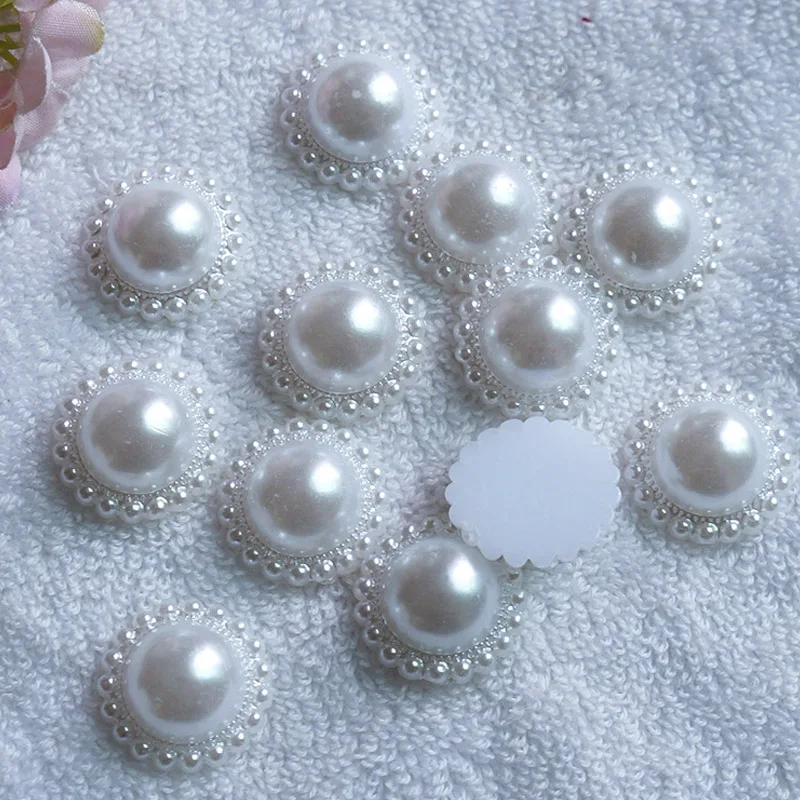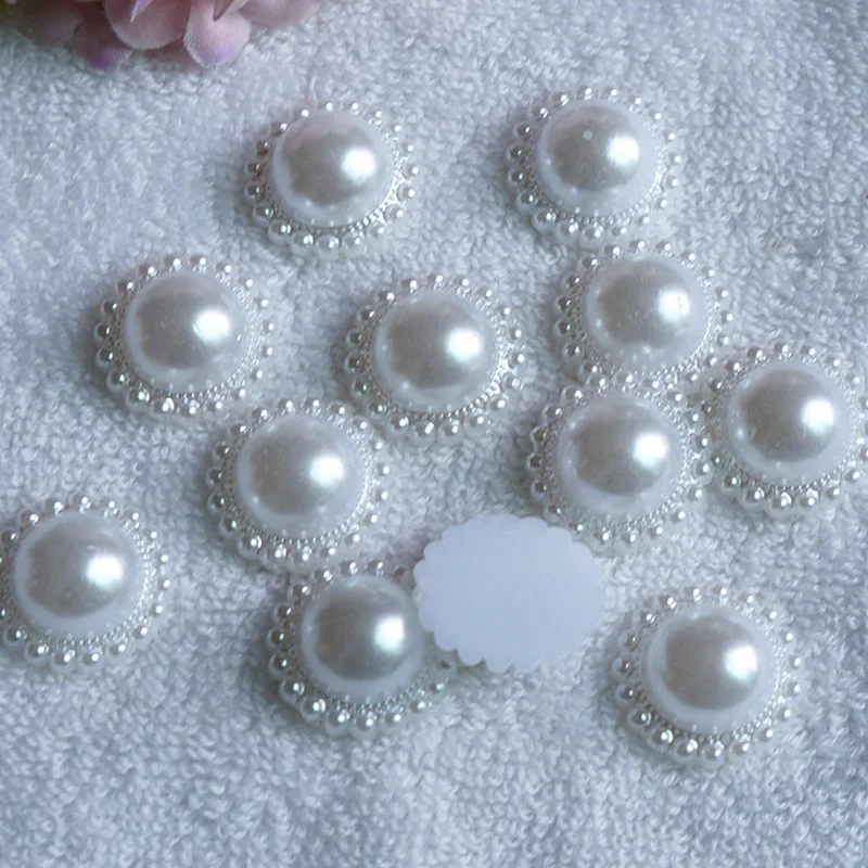100 шт Сделай Сам Изготовление ювелирных изделий белый цветок имитация половинки жемчужных бусин украшение ремесла плоская спина, Кабошон бусины DIY принадлежности для рукоделия