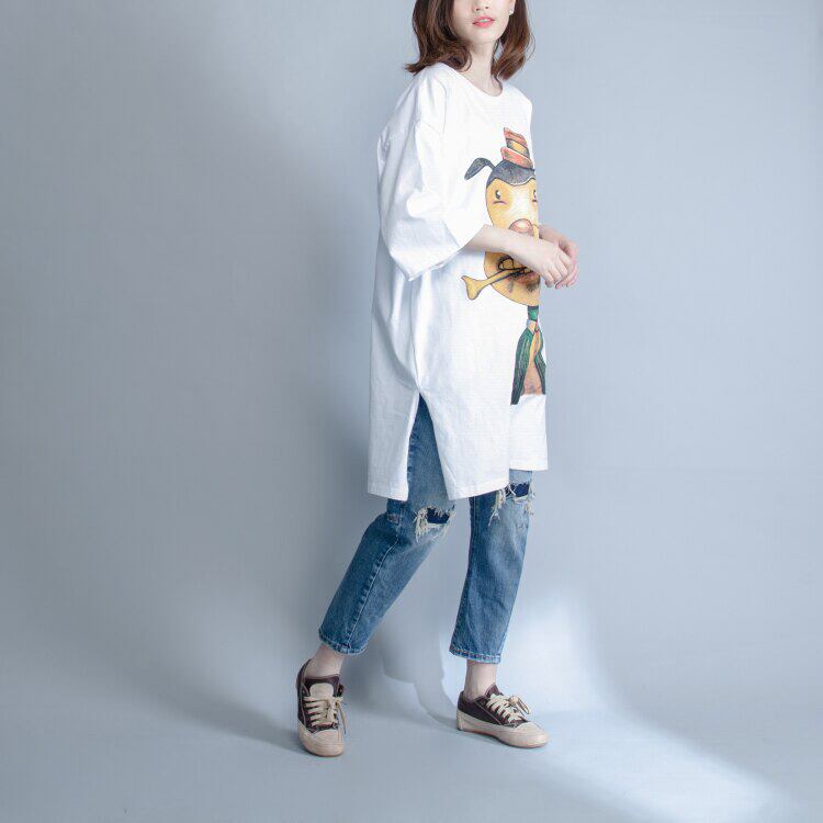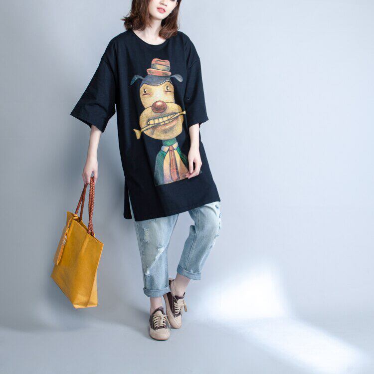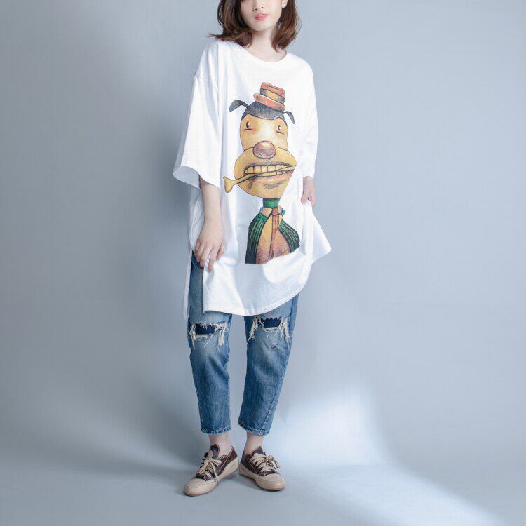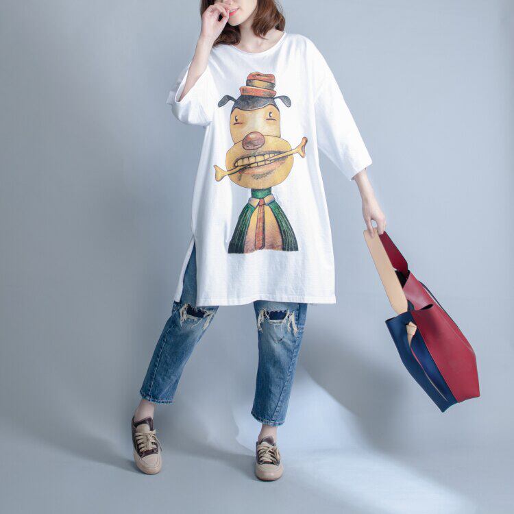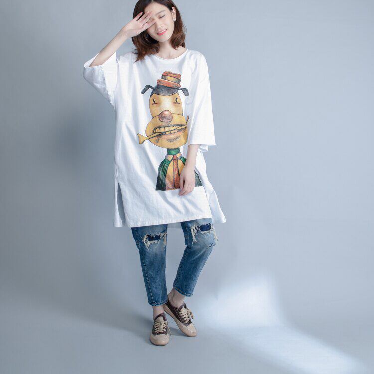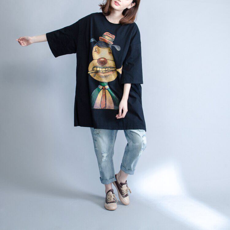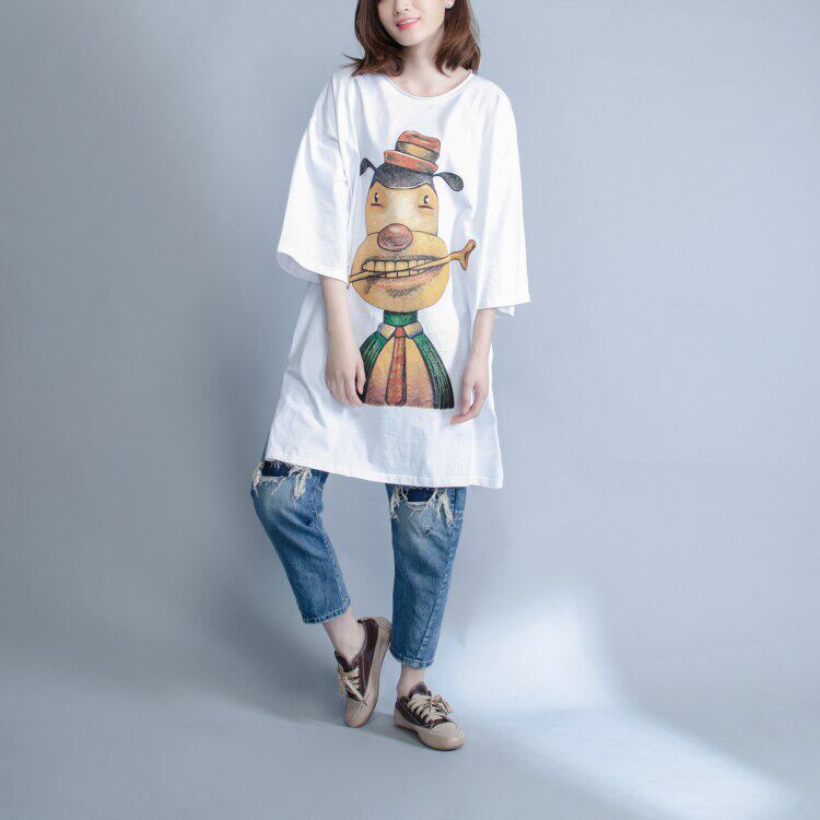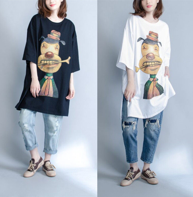 Женские футболки длинные пуловеры плюс размер 2XL топы тройники хлопок Принт мультфильм Повседневная Женская одежда пол рукава Свободный размер d