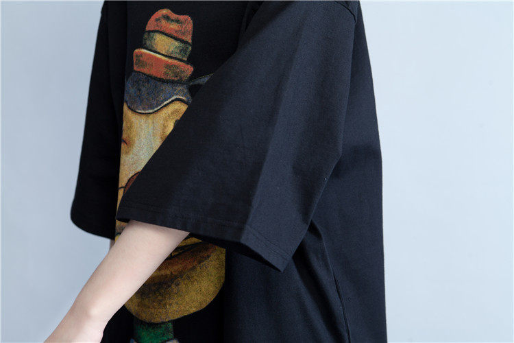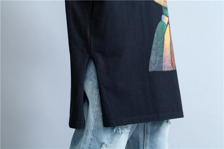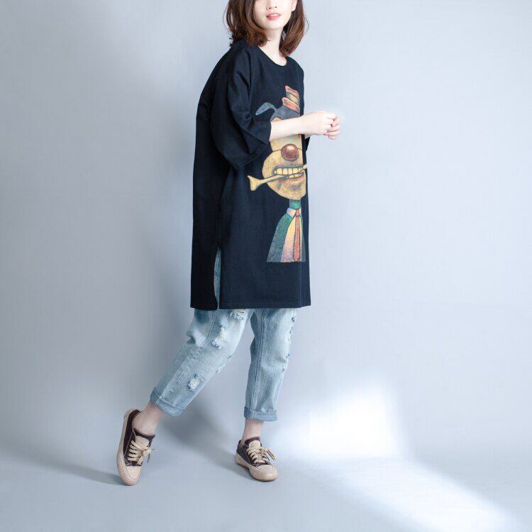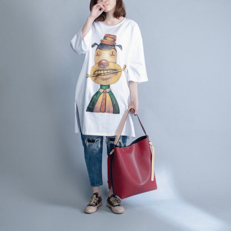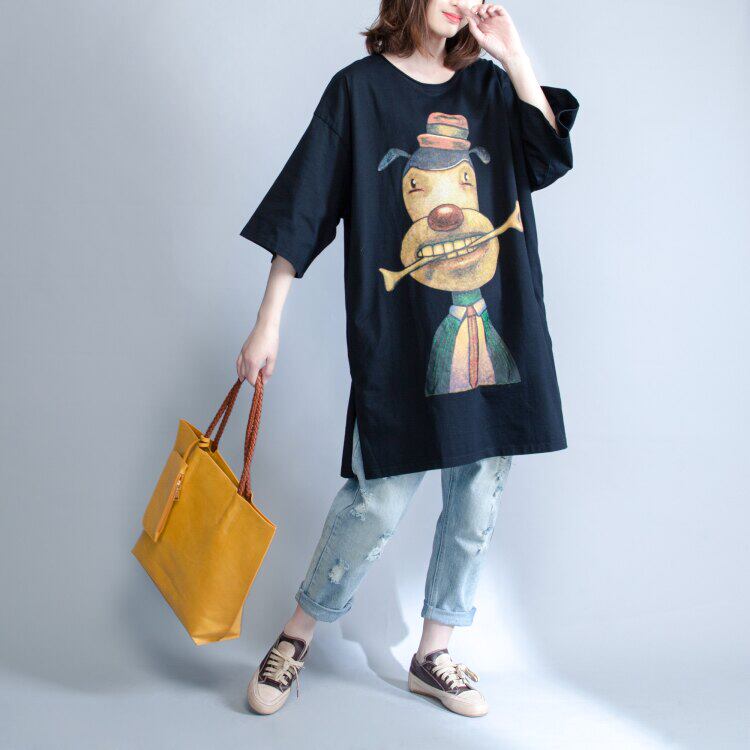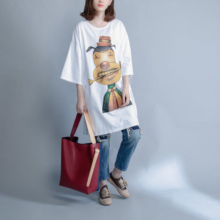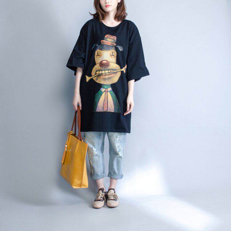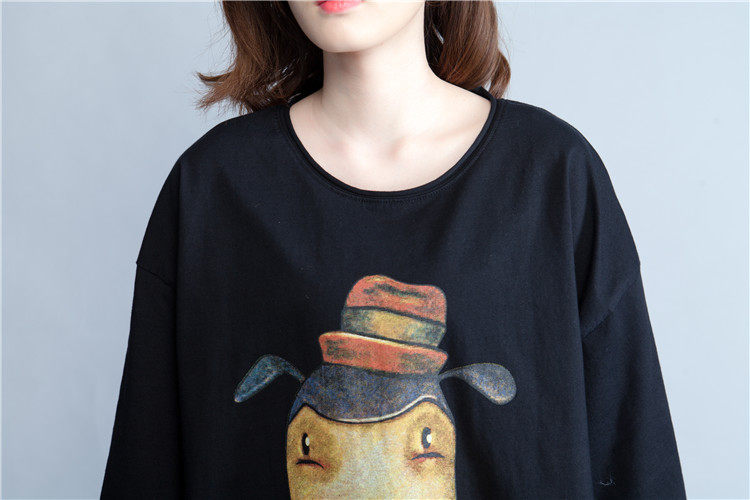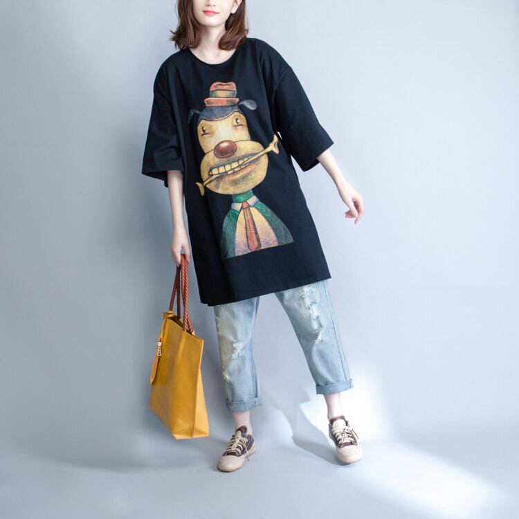 Женские футболки длинные пуловеры плюс размер 2XL топы тройники хлопок Принт мультфильм Повседневная Женская одежда пол рукава Свободный размер d