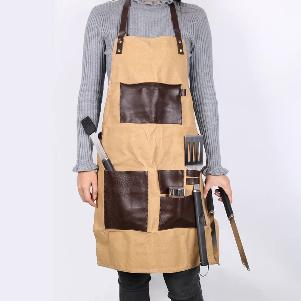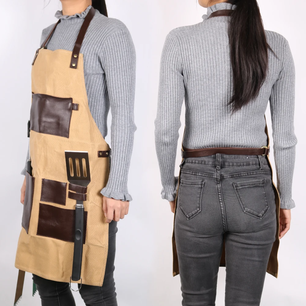 WEEYI вощеный брезентовый фартук для барбекю с ремешком из натуральной кожи
