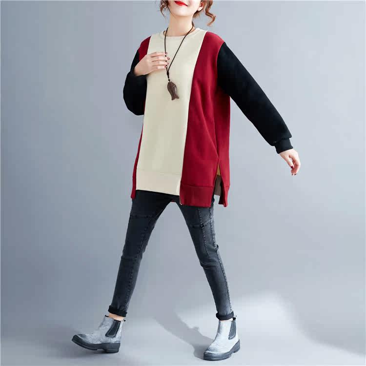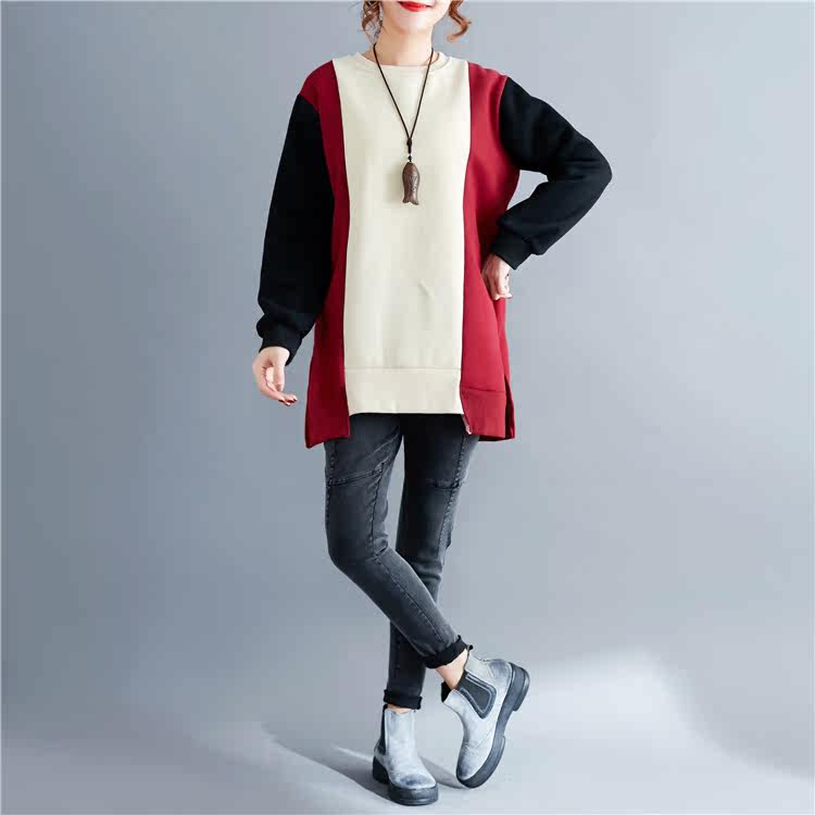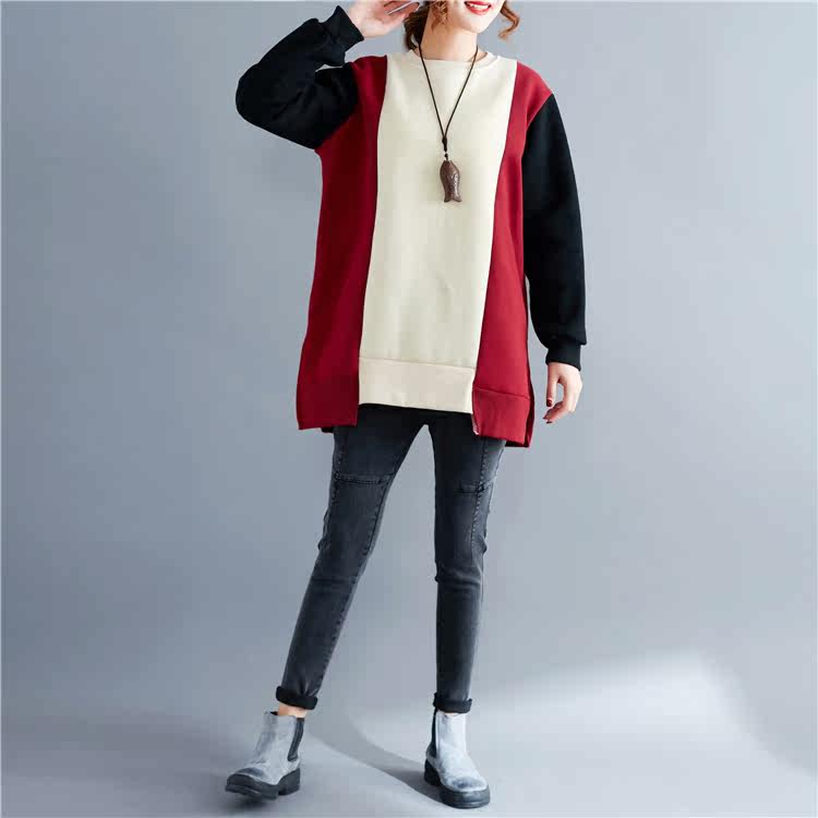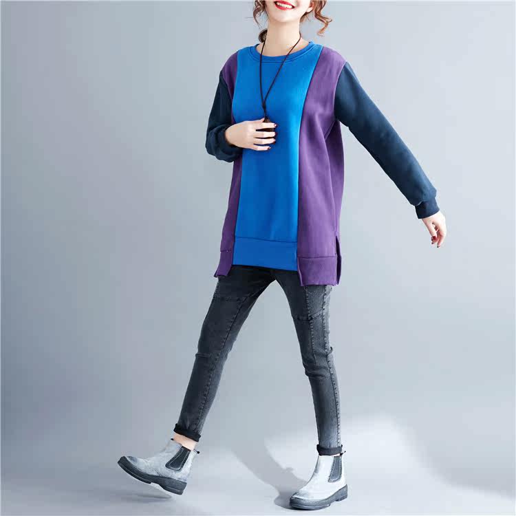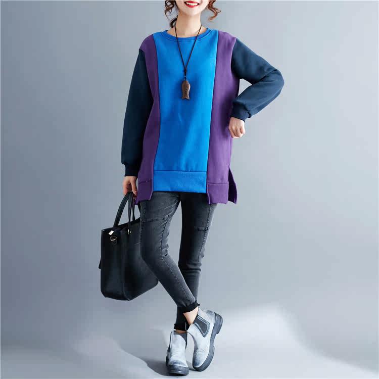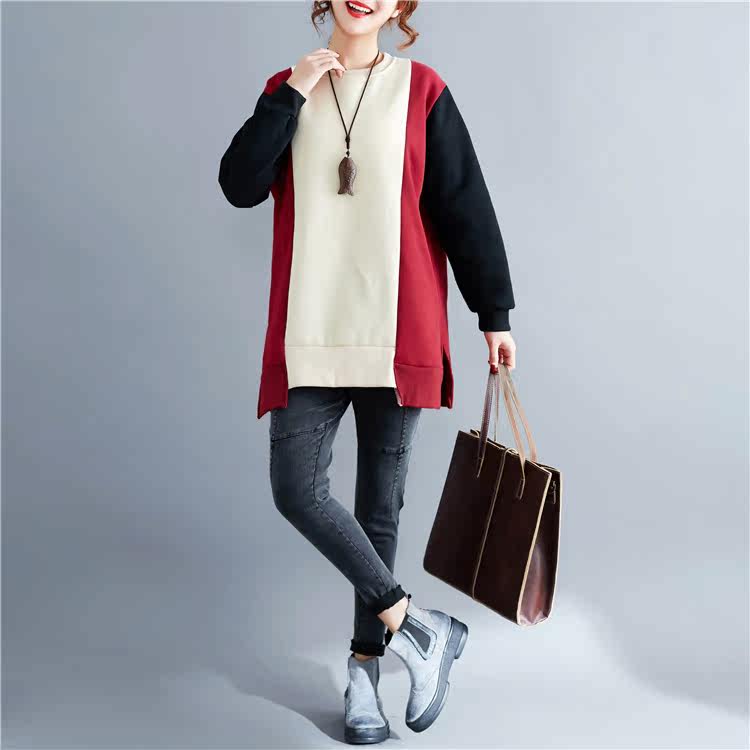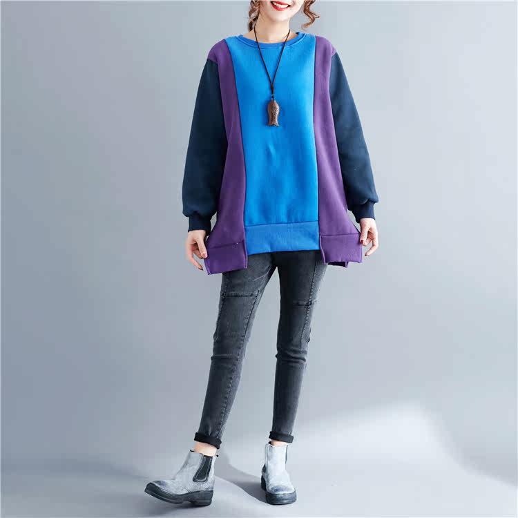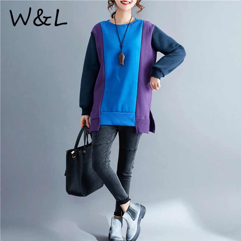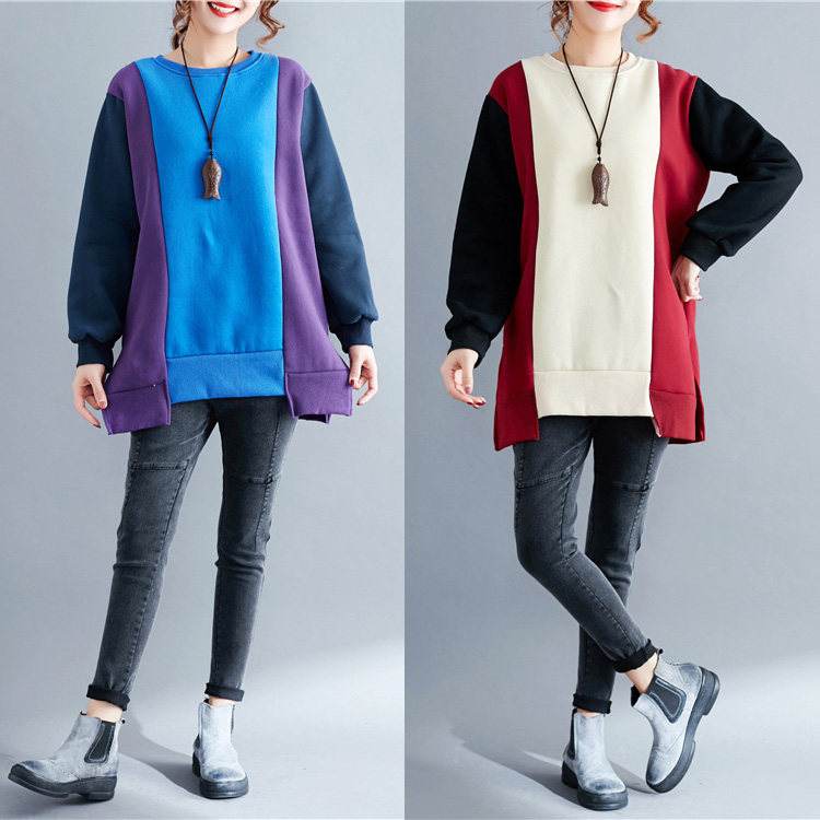 Толстовки с капюшоном Для женщин зима-осень пуловер Топы корректирующие женские Костюмы плюс Размеры утепленные хлопковые свободные негабаритных панелями Сплайсированные