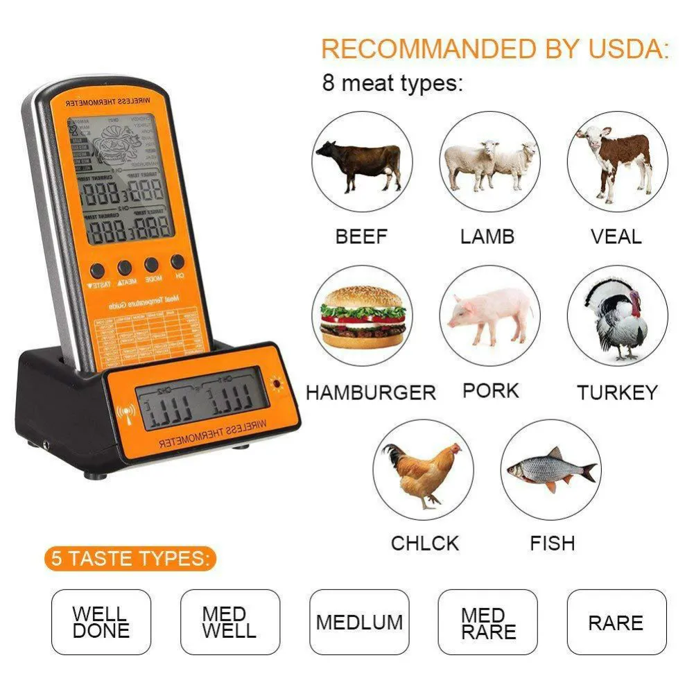 AsyPets Wireless Waterproof BBQ Thermometer Digital Cooking Meat Food Kitchen Oven Grilling Thermometer With Timer Function